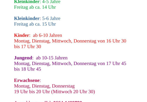 Montag Mittwoch Donnerstag von 16.3 Anmeldungen: Tel. 0664-1409780Uhr
